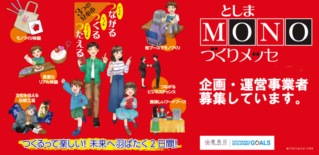 - 委託内容:としまMONOづくりメッセの企画・開催準備・開催運営・広報・記録・印刷物作成。